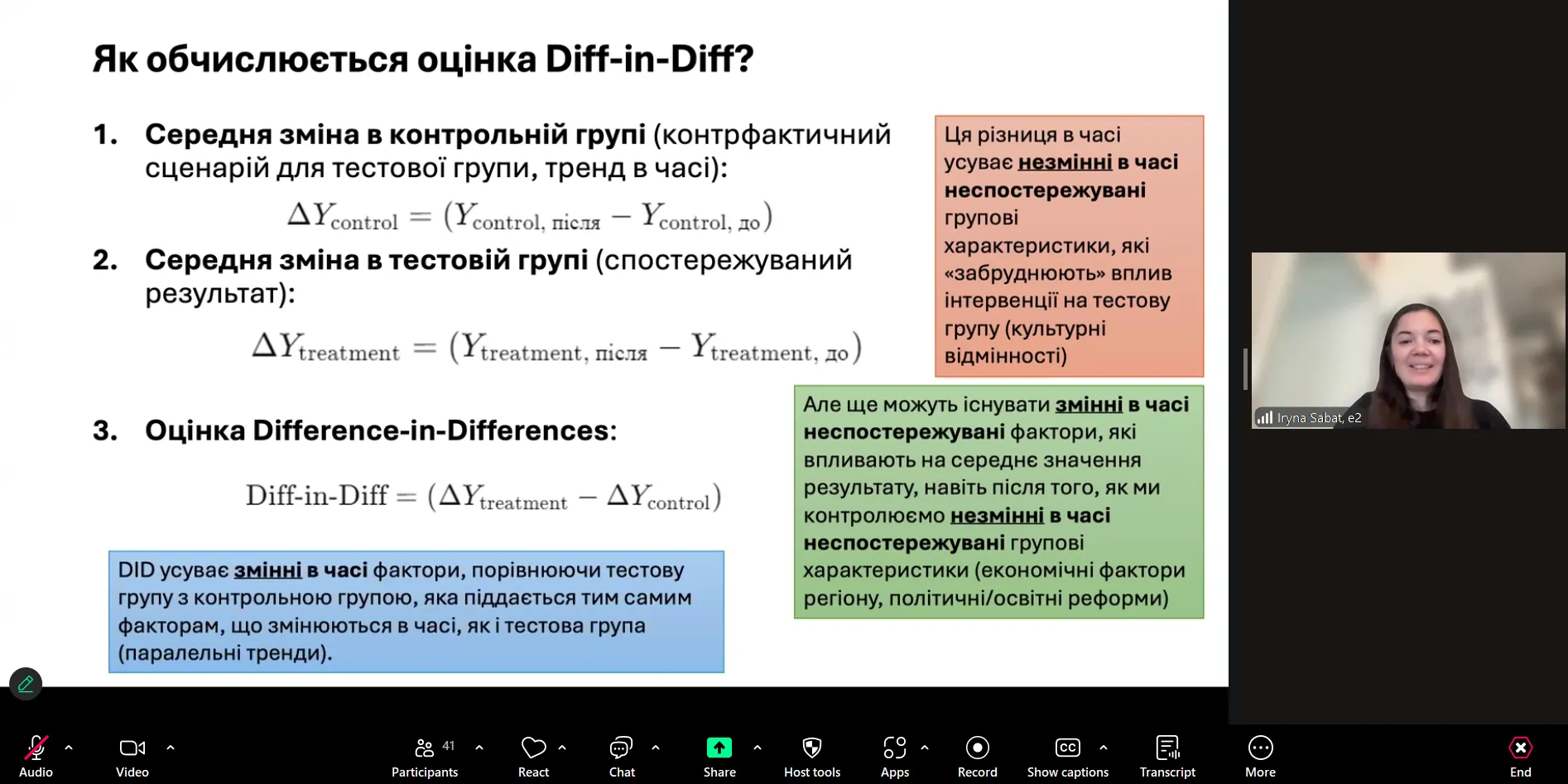 - основною метою методу Diff-in-Diff, його ключовими передумовами та обмеженнями;