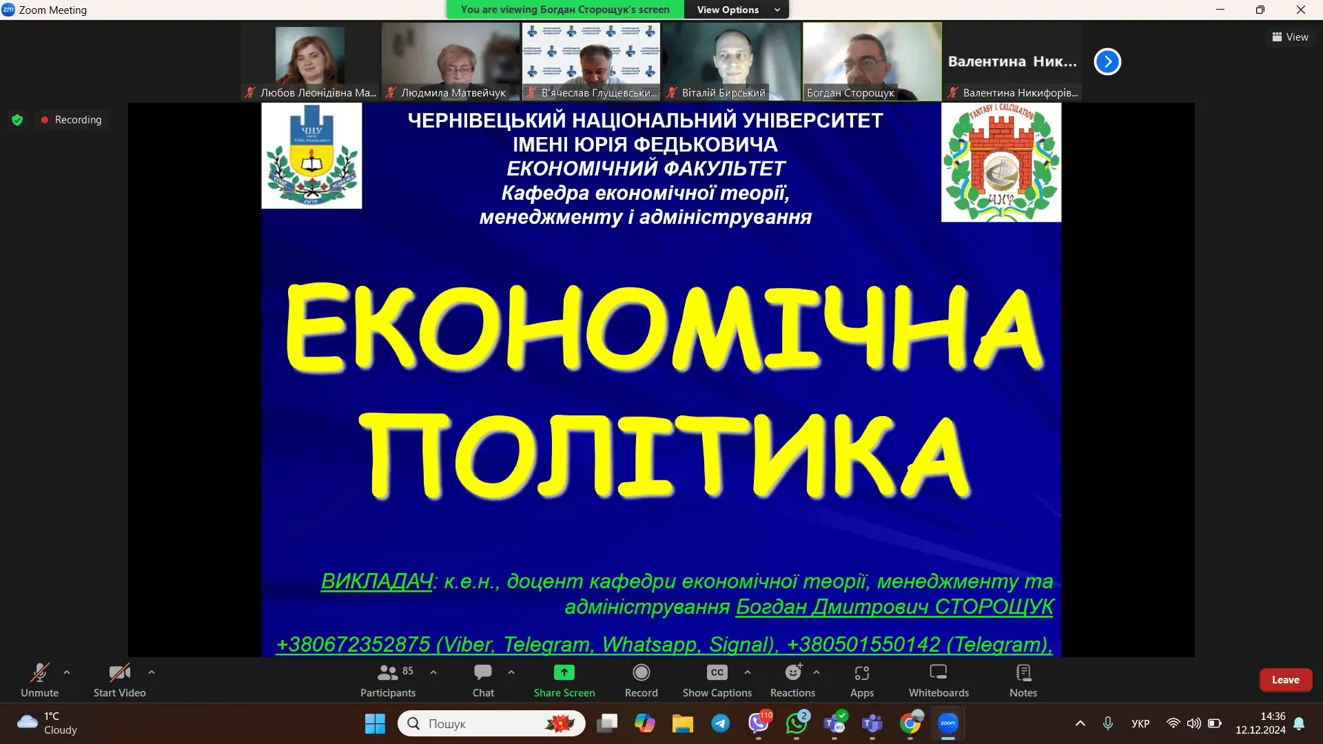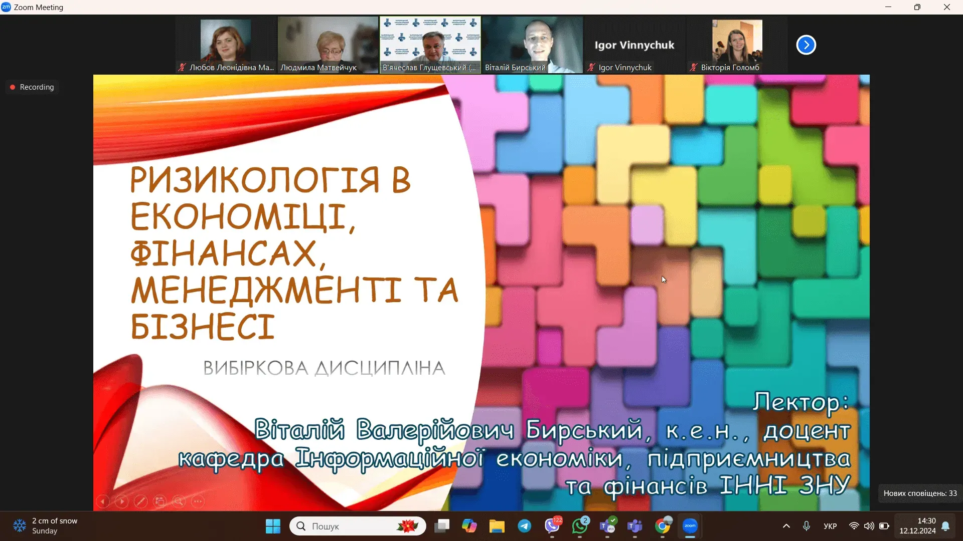 12 грудня 2024 р. в рамках Пілотного проекту внутрішньої академічної мобільності (ВАМ) відбулася онлайн-зустріч за участю науково-педагогічних працівників та здобувачів Інженерного навчально-наукового інституту Запорізького національного університету, економічного факультету Чернівецького національного університету ім. Юрія Федьковича, Хмельницького університету управління та права ім. Леоніда Юзькова та інших університетів-партнерів з метою презентації вибіркових дисциплін економіко-управлінського блоку для формування індивідуальної освітньої траєкторії здобувачів на 2025-2026 навчальний рік.