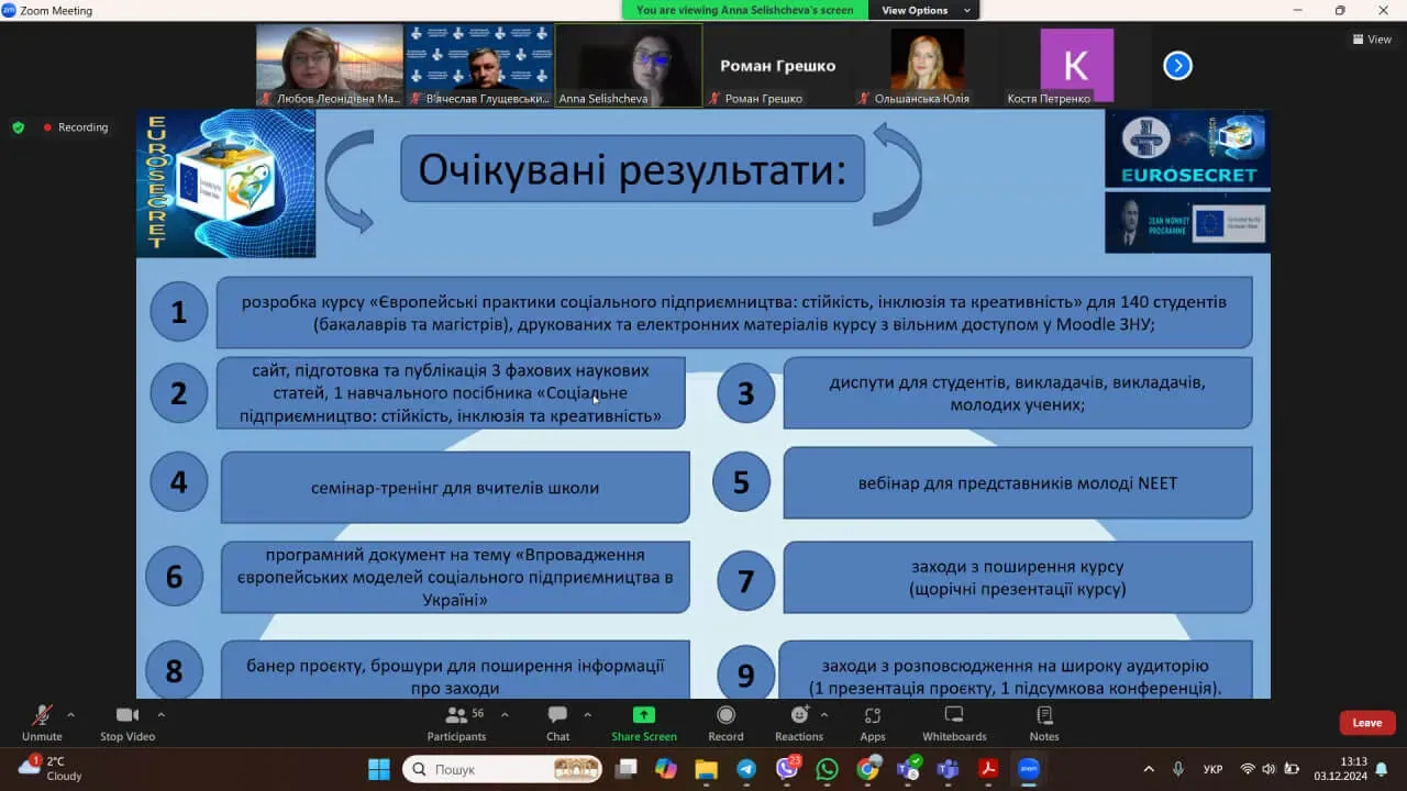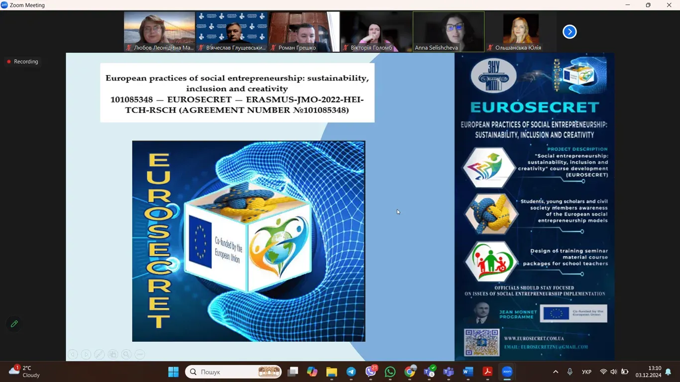 3 грудня 2024 року викладачі економічного факультету ЧНУ та Інженерного навчально-наукового інституту Запорізького національного університету провели спільну онлайн-конференцію, присвячену вдосконаленню освітніх програм управлінських, економічних та інженерних спеціальностей з урахуванням цілей сталого розвитку.